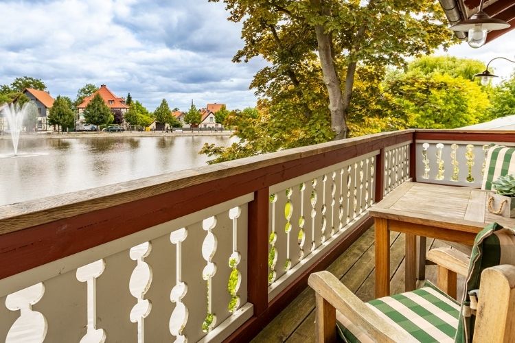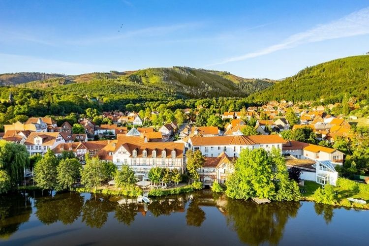 Das Landhaus liegt idyllisch direkt am Forellensee und am Fuße des Brockens – perfekt für Paare, die Ruhe und Natur suchen. 76 individuell gestaltete Zimmer und Suiten stehen zur Auswahl. Besonders beliebt bei Paaren sind die Badehaussuiten im denkmalgeschützten, 2012 sanierten Badehaus. Sie bieten bis zu 40 qm, eine eigene Holzterrasse direkt am See und große Bäder zum Entspannen. Wer es etwas günstiger mag, findet in den Landhauszimmern mit Seeblick (ca. 32 qm, ab 265 €) eine romantische Alternative.